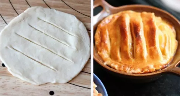 格子状にカットする時間がない場合は丸くカットしたパイシートに数本の切れ込みを入れるだけでもOKです。