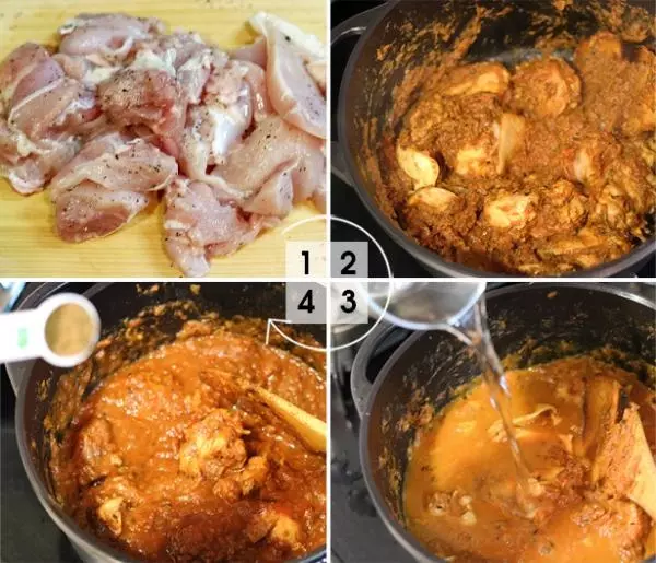 カレーペーストにカットした鶏肉を入れ、絡めるようにして中火で炒めます。