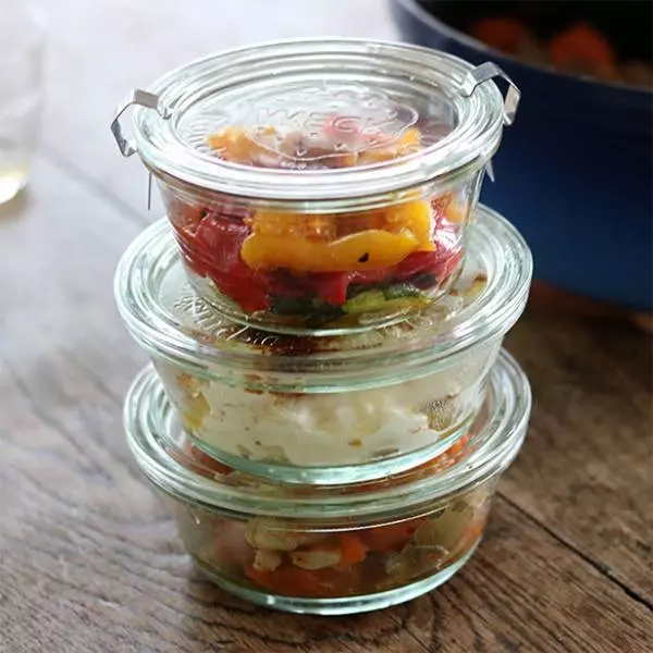 普通はボウルで冷やすのですが、WECKなら蓋をすればスタッキングでき、冷蔵庫でも場所をとらないので、冷製スープにとても向いています。