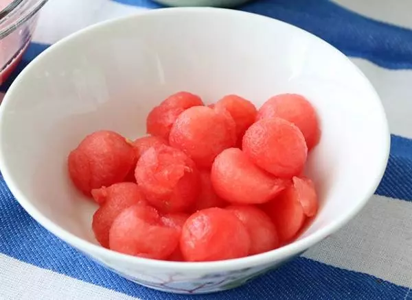 スイカ(1/4カット程)をボーラーやスプーンなどで丸く12〜18個程、繰り抜いておきます。