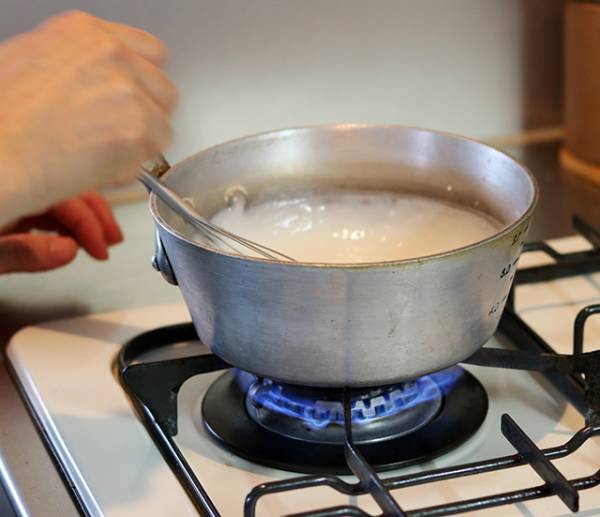 片栗粉を加え、とろみがつくまでよく混ぜます。