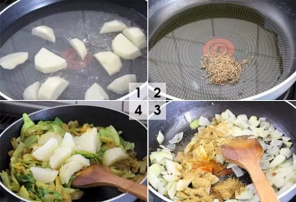 小さくちぎったキャベツを入れて焼きつけて、茹でたジャガイモを入れ、味が馴染んだら完成です。