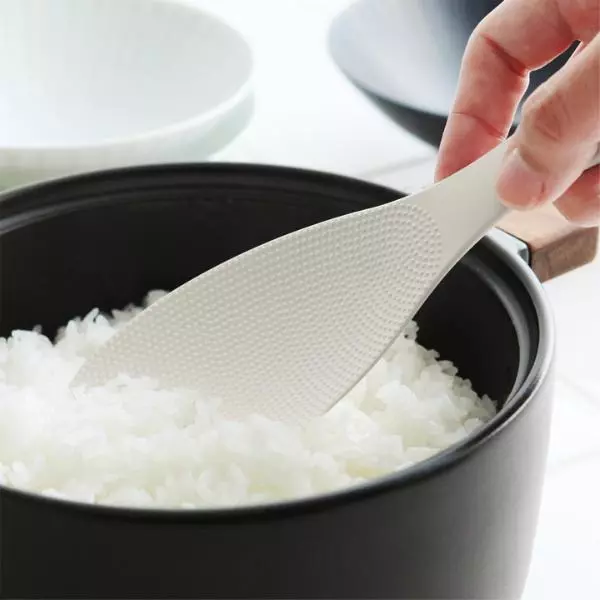 ヘラがとっても薄くて長いから、炊き立てのお米にスッと入り、ふっくら炊けたお米の粒をつぶさずに底からシッカリ混ぜることが出来るんです。