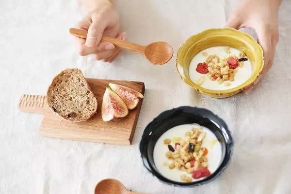 家族の朝ごはんの風景によく似合う、icuraを主宰される筒井則行(つついのりゆき)さんの木のテーブルウェアたち。