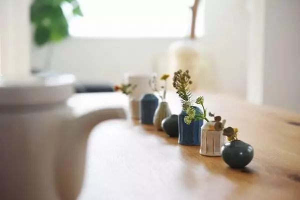 手のひらにおさまるaya ogawaさんの小さな小さなフラワーベースたちは、ちょっとした瞬間、ちょっとした場所に、小さな幸せをもたらしてくれる存在。