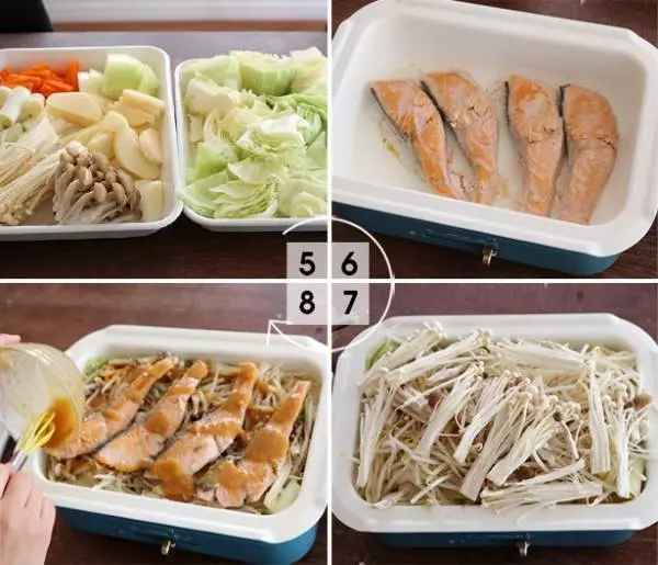 深鍋を使えば味噌ベースの王道の鮭のちゃんちゃん焼も、野菜をたっぷり食べられます。