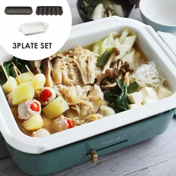 元々セットの平プレートとたこ焼きプレートに、別売りのセラミック深型プレートが付いたスペシャルなセットです。