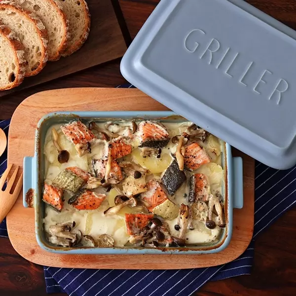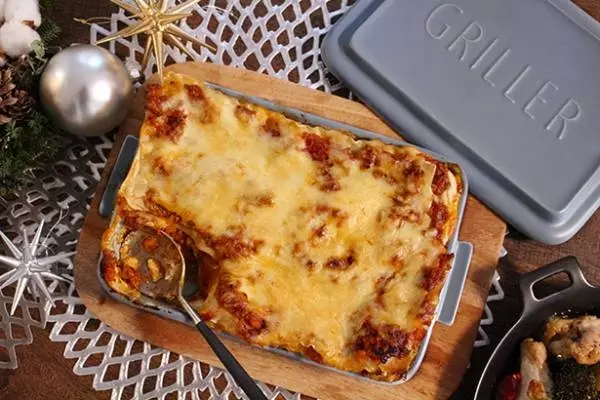 陶器のダッチオーブンをイメージして作られた「グリラー」なら、ラザニアも美味しく焼き上げてくれるのはもちろん、テーブルで主役になれるルックス。