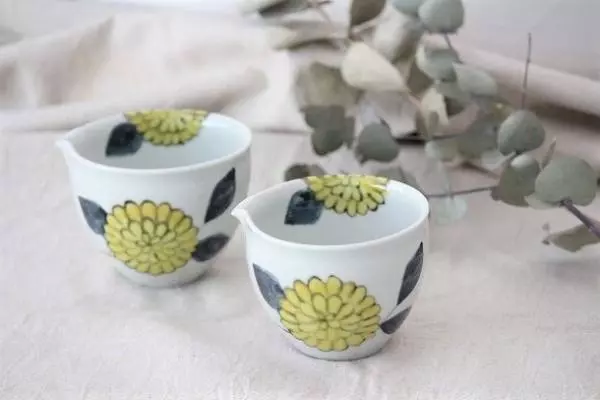 写真の片口のほか、色絵みかんの飯椀やそば猪口、色絵椿のそば猪口も。徳永さんの描く色絵はこれからの季節にぴったりのモチーフ。数が少ないのでお早めにどうぞ。