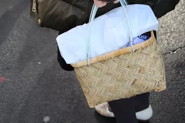 サザエさんが持っていそうなカゴバッグで築地さんぽ。