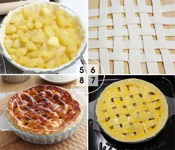 2cm程度にカットしたパイシートを網目に組み、かぶせます。