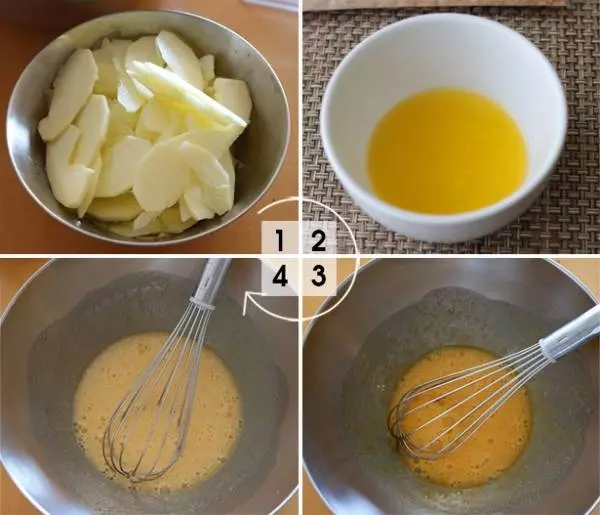 スライスしたリンゴに、生地が絡むように全体を混ぜ合わせます。