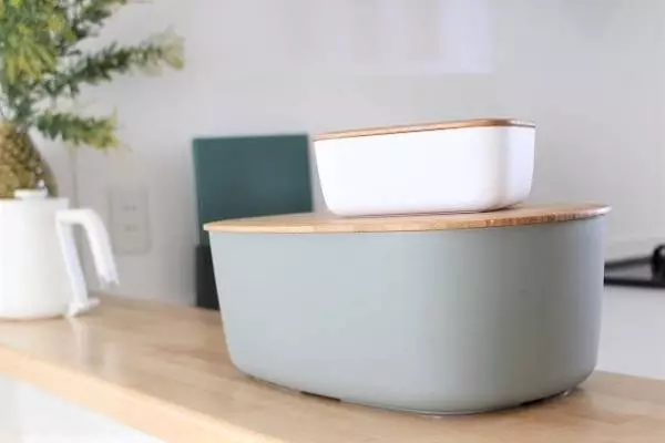 ブレッドケースやバターケースは、シンプルな佇まいでありながら、竹素材のフタと北欧らしいニュアンスカラーのボディとの組み合わせが温かな雰囲気。