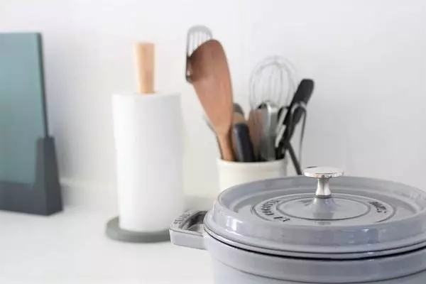 北欧風のキッチンに似合うのは、天然木の表情が優しいこんなペーパーホルダー。生活感が出やすいキッチンにも、優しい雰囲気が漂います。