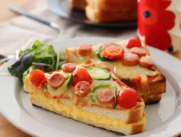 春の訪れを、こんな厚焼きピザトーストで楽しみましょう。