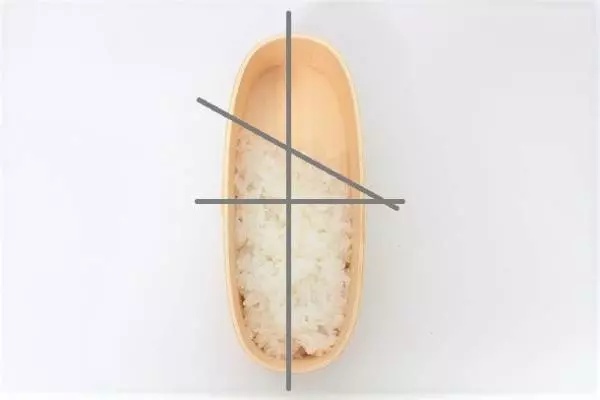 冷ましたごはんを詰める時ついつい真ん中のラインでおかずと区切ってしまいがちなごはんの詰め方も、日によって縦のラインで詰めたり、斜めのラインで詰めたりすることで、マンネリを防ぐことが可能です。