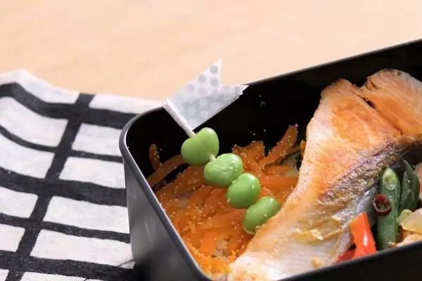 枝豆のきれいな黄緑色と、小さな球体が連なった可愛らしいフォルムが、お弁当にリズムを与えてびっくりするほど楽しいお弁当にしてくれますよ。