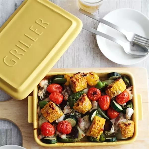 イメージは陶器製のダッチオーブン。蓋をすれば全体から食材にじっくりと熱が伝わり、おいしい蒸し焼き料理が作れます。⇒GRILLERグリラー3,240円(税込)