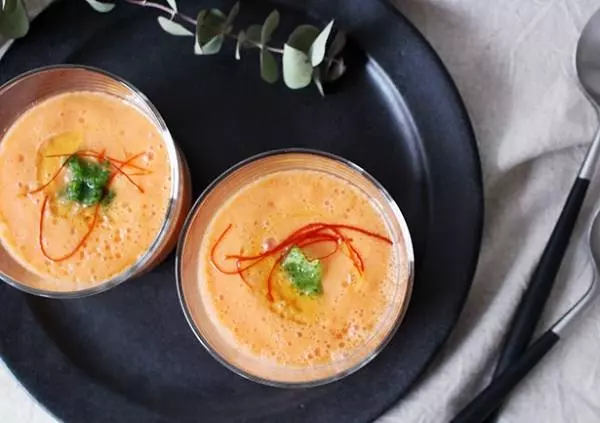 見た目も美しく、体にも優しい野菜の冷製スープ。