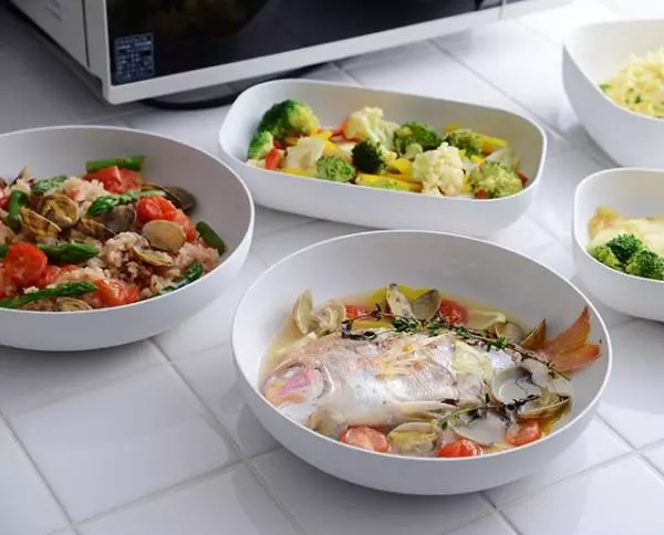「レクタングル」や「スクエア」はひとり分のパスタを作るのに向いていますが、ラウンドは浅く一回り大きいサイズ感なので、家族みんなで食べるおかずを作るのに向いています。