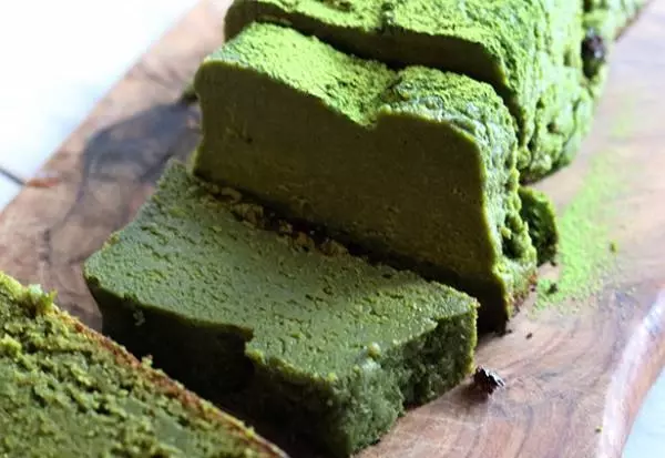 しっかりと冷えたら、カットして抹茶パウダーをふりかけてどうぞ。