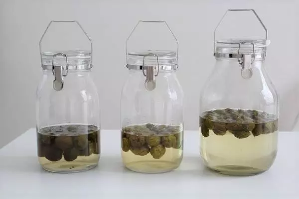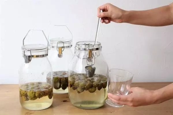 1か月も過ぎた頃には、どの保存瓶の氷砂糖もきちんと溶けています。