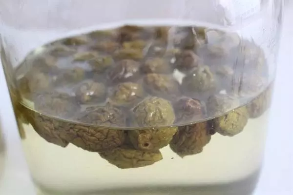 フォークの穴が気になる梅の実はすっかりシワシワです。食べてもいいのですが、食べるのも躊躇してしまうような見た目です。。