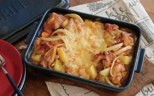 話題のレシピ「チーズダッカルビ」もグリラーでOK。具材を混ぜ合わせてオーブンで焼き上げるお手軽レシピ。そのままテーブルにサーブしてどうぞ。