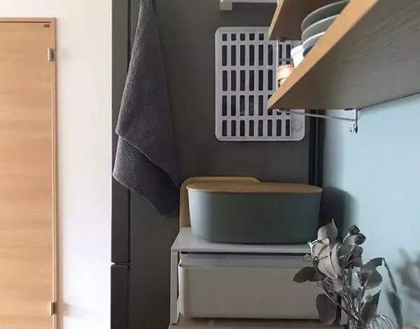 今まで目隠しの布をかけていたのですが、その上にパンを置いたり食べかけのお菓子を置いたりしてしまっていざラップを使うときに使いにくいという状況に。