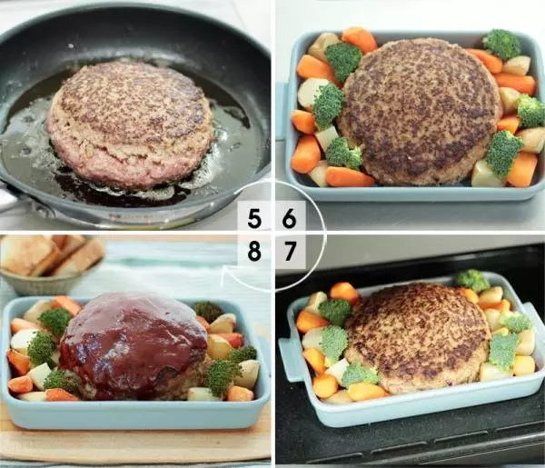 フライパンで表面に焼き目をつけ、オーブンでじっくり火を通すことによって、ハンバーグがふっくらジューシーに仕上がります。