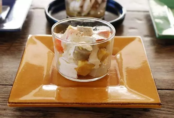 目でも楽しめる様に、ガラスのうつわ「ボデガカップ」にぴったりな前菜を教えて頂きました。