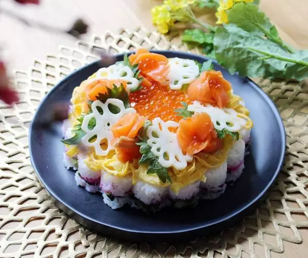 そんなひな祭りのお祝いにぴったりなのが、女の子の大好きな「お花の形」をした散らし寿司ケーキ。