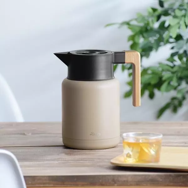 シャープなステンレスとあたたかな天然木とのコントラストが美しいサーモジャグ キート。食卓で絵になる、スタイリッシュな保温・保冷ジャグです。