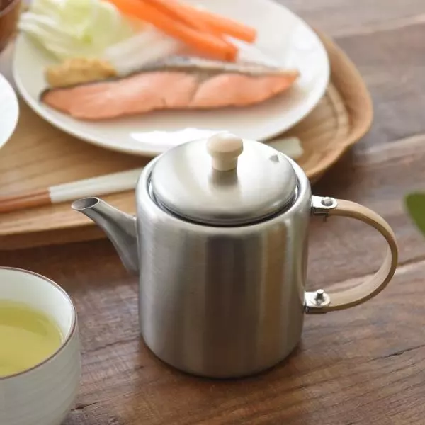 ステンレスの急須だから、湯呑やマグカップとのコーディネートに悩まないのも使いやすい秘訣。