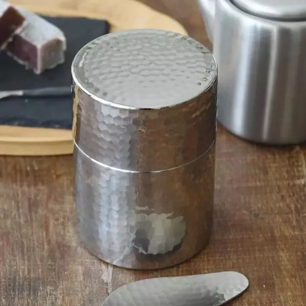 ティーキャディー/鎚目が美しく施された、手に馴染みやすい茶筒。継ぎ目がなく、お手入れも簡単です。