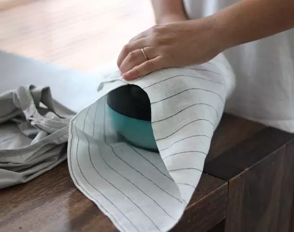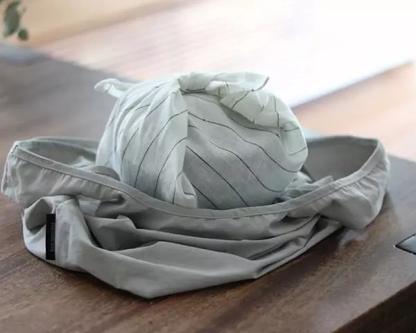 私は取っ手のところにカトラリー入れを差し、「bon momentリネンクロス」で包みます。
