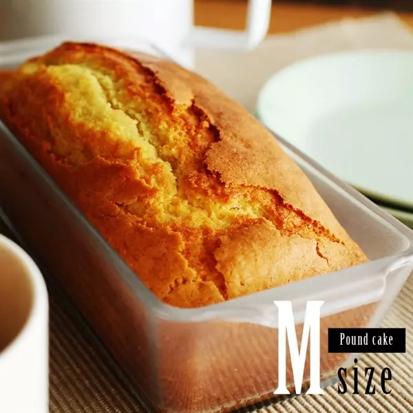 今回使用したパウンド型はセラミックコーティングをした耐熱ガラス皿、「Cera Bake」。汚れがこびりつかず、型離れのよさが特徴で、何も敷かず、塗らなくともスルッと型から取り出すことができます。