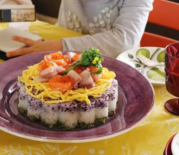 そんな華やかな席にぴったりなのが「ちらし寿司ケーキ」。いつものちらし寿司もお花の型でデコレーションすれば、とても華やかな食卓に。
