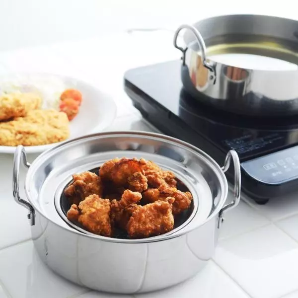 揚げもの料理を簡単にする揚げ鍋、「油ターン」。
