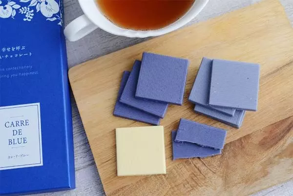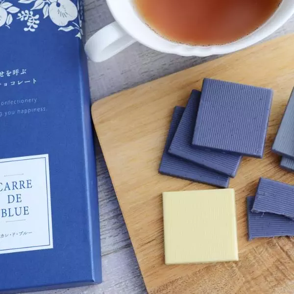 まず紹介したいのは、青いチョコレート。よく見る茶色のチョコレートではない、鮮やかな色合いはまるで宝石のよう。