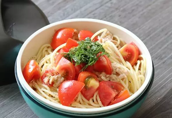 ▲電子レンジでパスタを湯がけば忙しい朝も簡単。パスタも弁当に加われば、よりバリエーションが広がります。