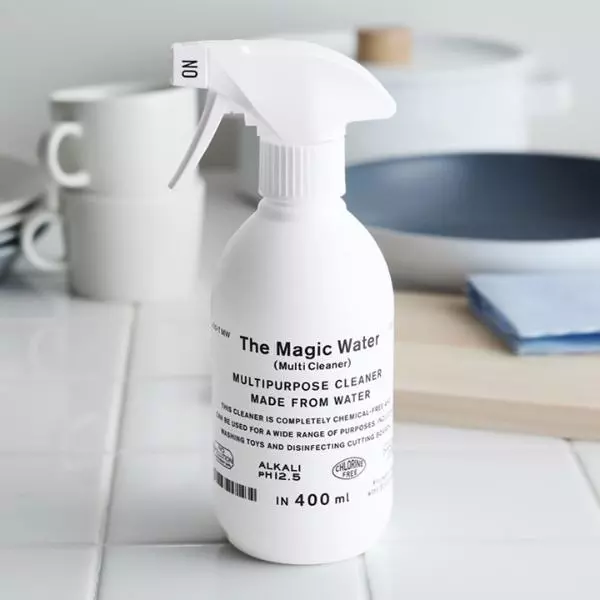 水の電気分解でつくられる、高濃度のアルカリイオン洗浄水の中和作用により、油汚れなど様々な汚れを落とせるクリーナー。原材料が水だけだから、赤ちゃんが口に入れることもあるおもちゃやペット用品、お部屋の壁紙やカーペットにまで使えます。また錆びないから金属製品のお手入れまでOK!