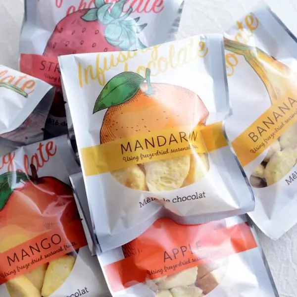 ドライフルーツにチョコレートを浸みこませたメレ・ド・ショコラのチョコレート。こちらは6種類のフルーツのしみチョコからお選びいただけます。