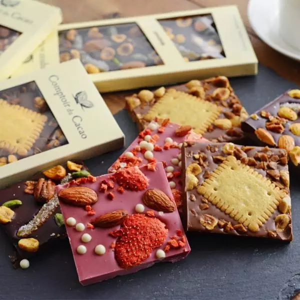 「サロン・デュ・ショコラ」での受賞歴を持つフランスのショコラティエから届いた、華やかなタブレット型のチョコレートです。こだわりの味も見た目もギフトにピッタリです。