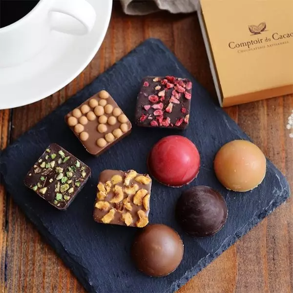 サロン・デュ・ショコラで2回の受賞歴、ミシュランにも選ばれた実力派ショコラティエである「コントワール・デュ・カカオ」発、新作プラリネが入ったアソートボックス。