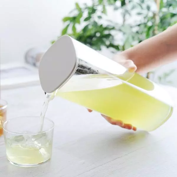 「KINTO」のウォーターカラフェ…シンプル構造で洗いやすく、割れにくいアクリル製のカラフェ。