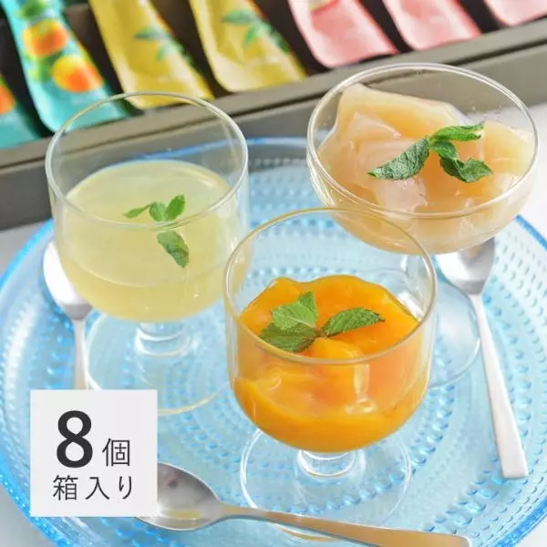 こちらは、ゼリー8個を専用箱に入れてお届けするので、お中元や暑中見舞いなどの夏ギフトにもぴったりです。