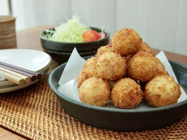 今回は、お月見団子の代わりに、一口大に丸めて揚げる「お月見コロッケ」をご紹介します。まん丸型が可愛らしく、小さいお子さんでも食べやすいサイズ感です。