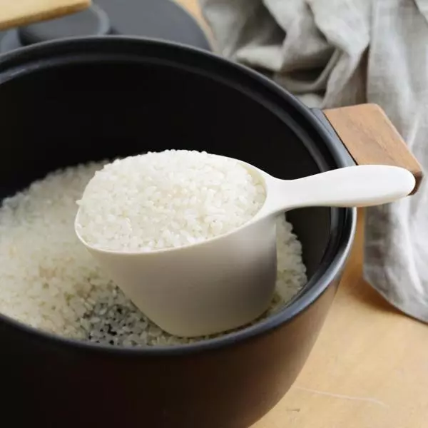 だから、底まですくえて、すり切りもスムーズ、握りやすいこの形状になりました。米びつへの移し替えも、炊飯時の計量も、このカップならラクラクです。