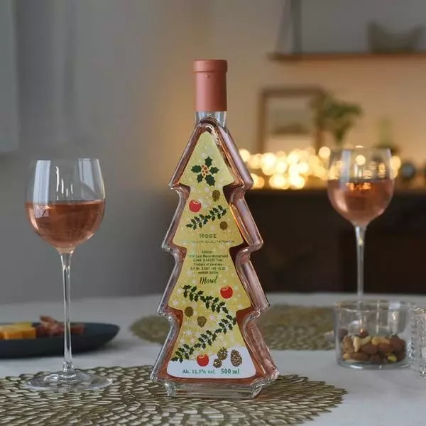 ドイツ・モーゼル地方産のロゼワインをクリスマスツリー型のボトルに入れてお届け。